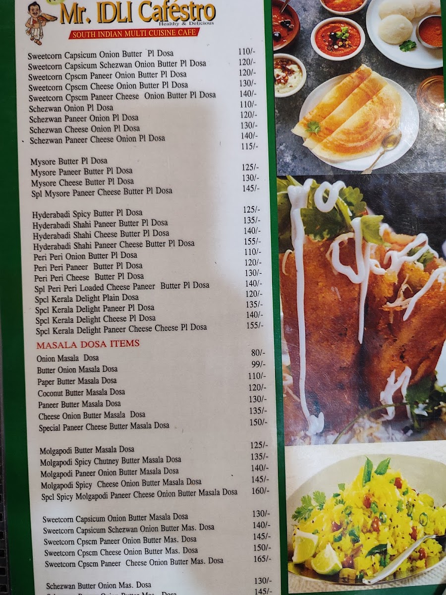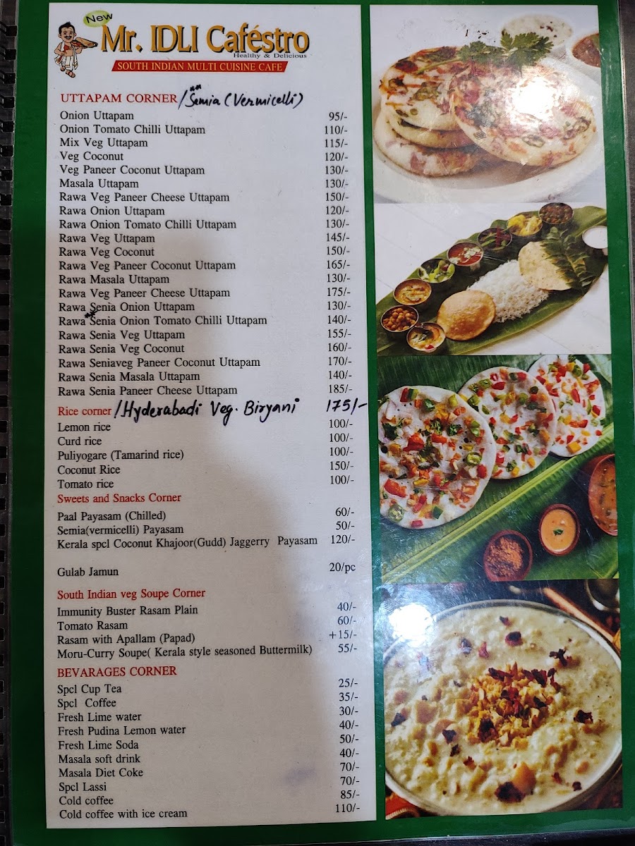 Introducing the Menu at Mr. IDLI CAFÉSTRO